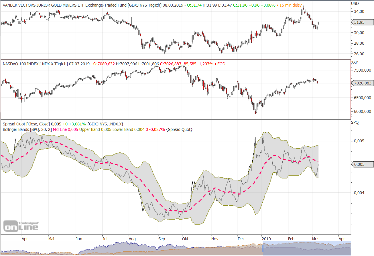 Anscheinend profitieren die Goldminen bei einem Rückgang des Nasdaqs v.v