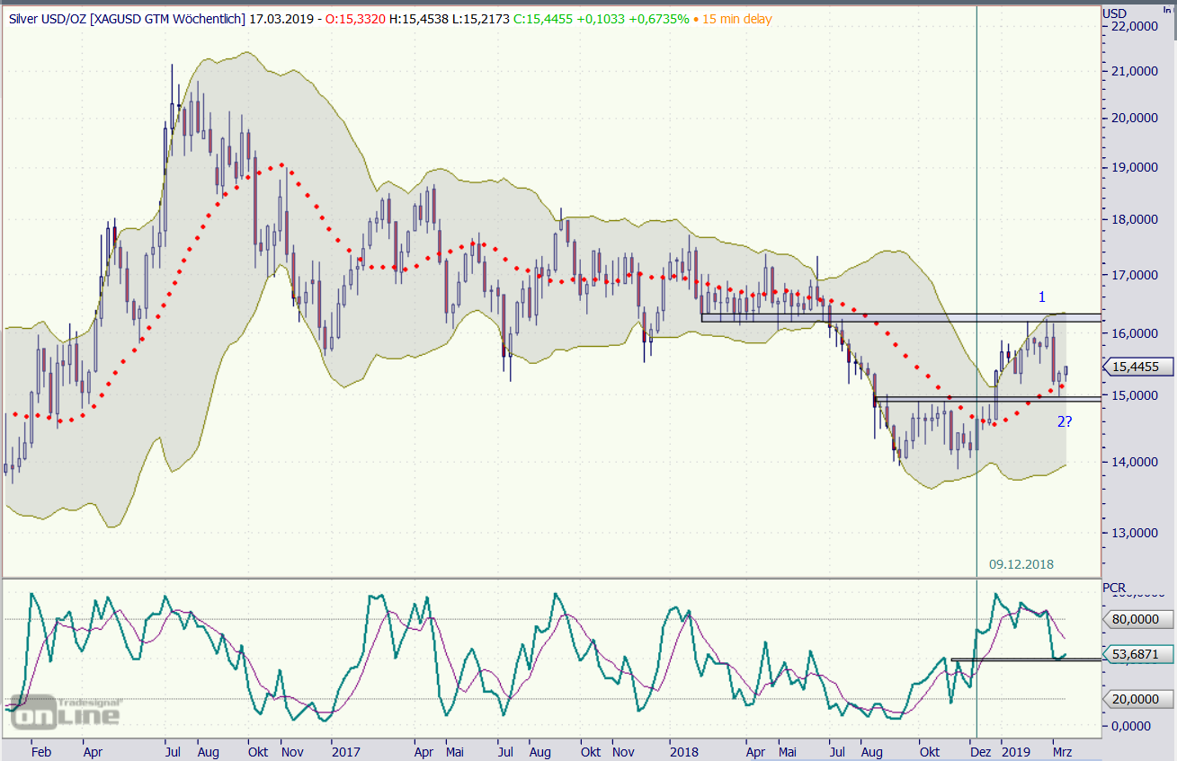 Bei annähernd neutralen Daten sollte einem weiteren Anstieg nicht allzuviel entgegenstehen, da die COT-Daten vom letzten POG-Hoch im Grunde noch nicht überhitzt waren; mit der jetzt vollzogenen Konsolidierung sollte daher weiteres Aufwärtspotenzial vorhanden sein.