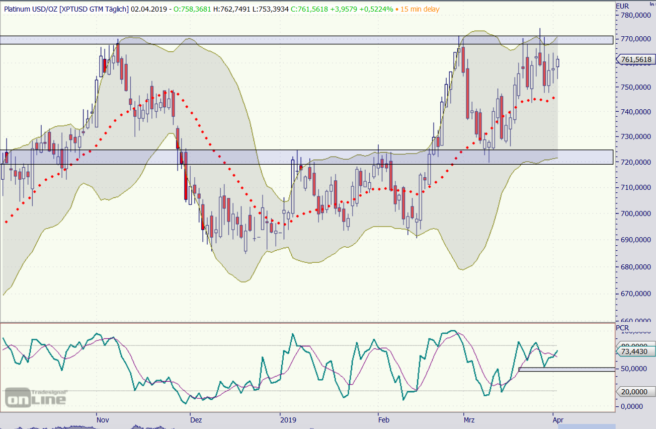 Sieht eher wie ein Keil aus. Ein Ausbruch könnte auch nach oben erfolgen. Noch fehlt das Kaufsignal des Momentumindikators.In EUR sieht Gold besser aus.