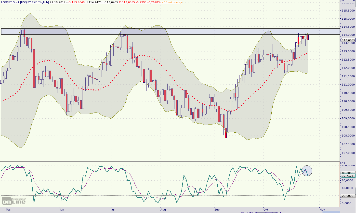 die Daten von Tradesignal sind jetzt aktuell. Bei 96 befindet sich im Wochenchart das oberere Bollingerband und eine starke Widerstandszone. Ein Anstieg würde auch zur Saisonalität eines Nachwahljahres passen.