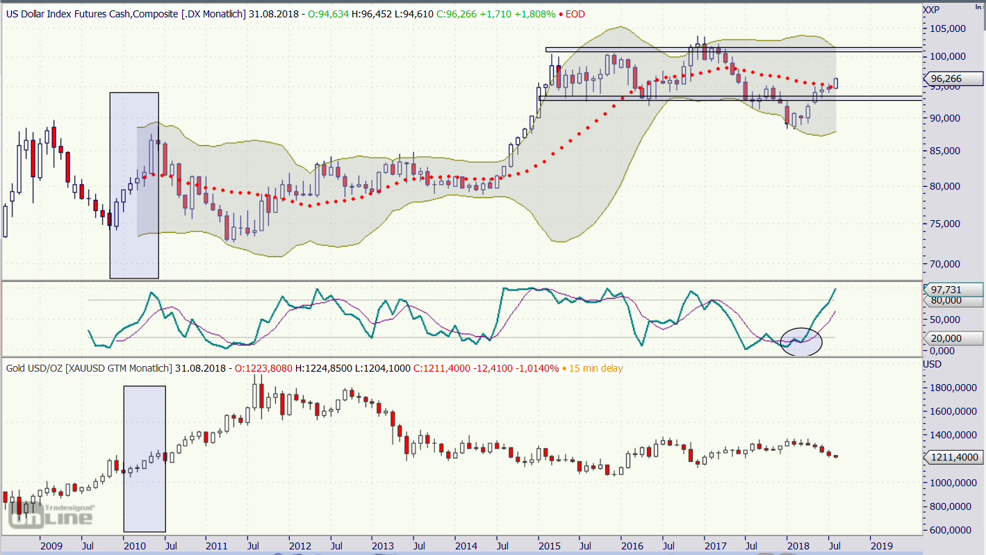 Gold - 10-jährigen Trend erreicht (mit 4 Ticks)
