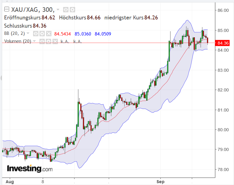 Oberer Widerstand im Stundenchart bei ca. 14,3 USD.Die Quote Gold zu Silber bildet m.E. eine Umkehrformation.