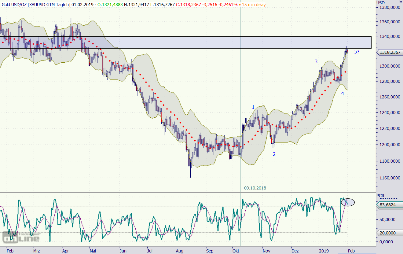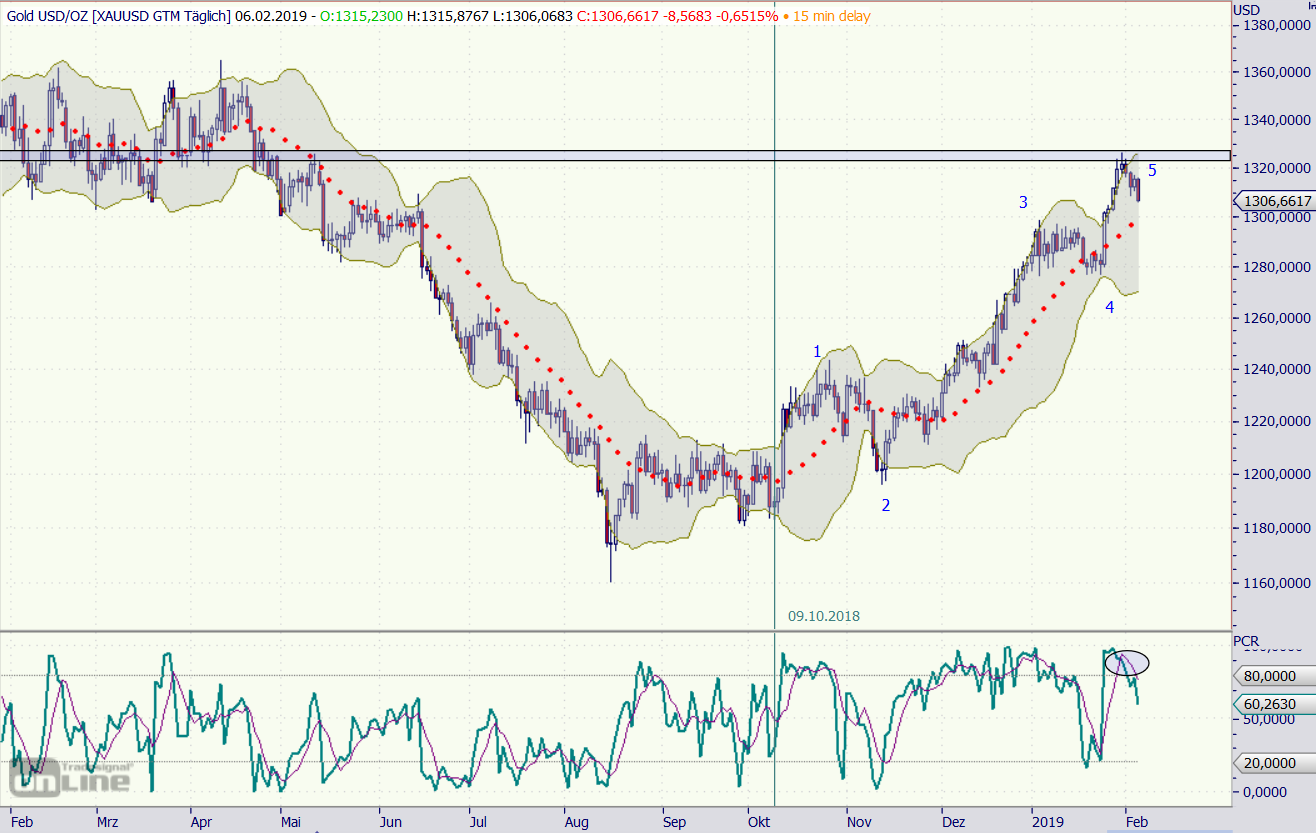 Möglicherweise stehen wir kurz davor, dass der "POG-Maler" sein "Goldpferdchen" fertiggestellt hat und pünktlich zum Wochenende den Pferdekopf hoffentlich (und gemäß der Regel einer bullischen Flagge folgerichtig) nach oben weitermalt. Allerdings könnte die Sache am "Zaumzeug" (1312 USD) noch scheitern...