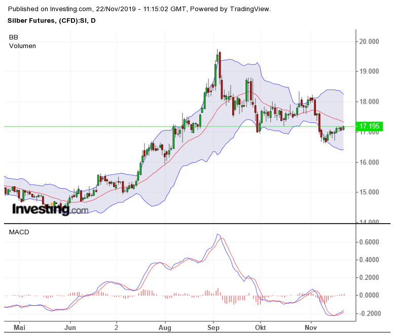 Das mittlere Bollingerband bei Gold und Silber hat leider gehalten.