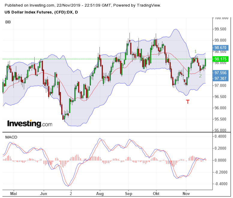 Der USD-Index ist zurzeit zu stark. Wenn hier der neue Aufwärtsimpuls ensteht, müssen wir uns noch etwas gedulden.