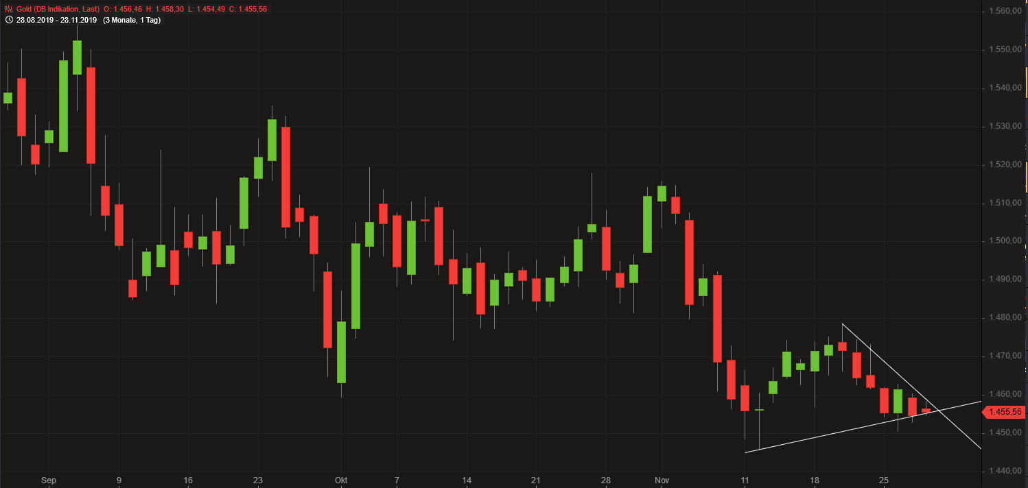 Allerdings ist von der Euphorie von Mittwoch Abend erstmal nichts mehr vorhanden und es könnte unterhalb von 1.456 $ auch nochmals einen kleinen Schlenker abwärts geben.