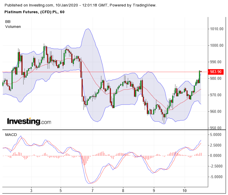 Platin ist im Stundenchart über die letzten Hochs gestiegen.