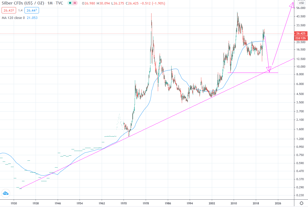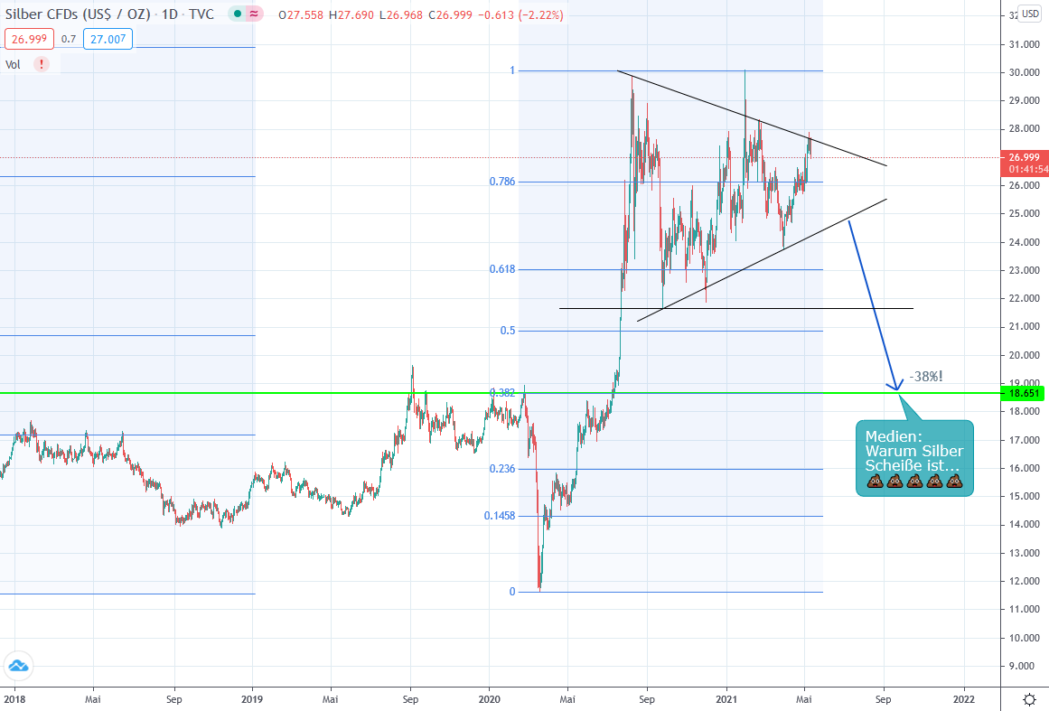 Das ist ein erster wichtiger Zwischenschritt, bevor wir den Silberpreis bis zwischen 18.62 $ - 13.70 $ fallen sehen.