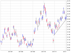 Die Indikatoren machen gar nichts mehr und zeigen gar nichts an ausser, dass es eigentlich Zeit wäre für eine Bewegung in irgendeine Richtung, der Kursverlauf könnte eine Bodenbildung andeuten, aber genausogut eine bearwedge. Eigentlich sieht es eher mehr nach bear-wedge aus.... da frage ich mich schon, weshalb die in meinem Depot ist.