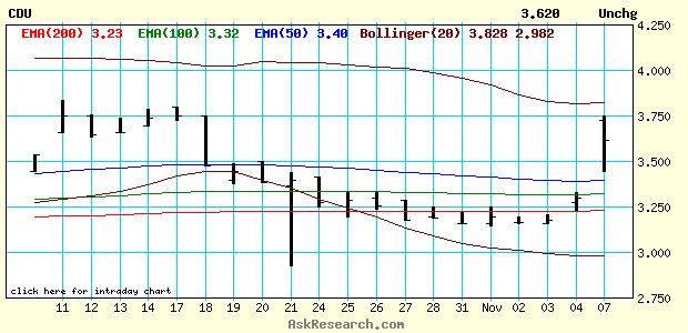Drilling has now been in progress for a few weeks, and the company hopes to be in a position to report the first results in early November. Last week's selloff in CDU appears to be due to rumors concerning the state of the drill program, and the company will remain vulnerable to such influences between now and the receipt of the first drill results. As someone who knows management and other interested parties, my observation is that they are doing a very good job of keeping a lid on information. While this project may not be high on the market's radar screen, it is being closely watched by major mining companies, and the recent alteration of the deal percentages greatly enhances the possible outcomes in the wake of a discovery. Were I not in this one so early ($0.50), and perhaps more importantly, were a frivolous lawsuit not still hanging over the IOCG project, C.ardero would be a formal recommendation. Instead, consider the preceding an observation, some of my thoughts in advance of news to come next month.