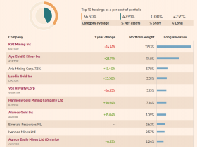 Eher zufällig gesehen, daß in diesem Fonds -- der u.a Basis für Prognosen des SKI / Dr. Jeff Kern darstellt -- Aris Mining / ARIS die 3.schwerste Komponente ist,