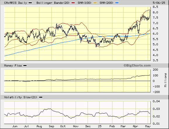 Die Globe and Mail berichtet in ihrer Ausgabe vom Donnerstag, 20. März, dass der Analyst Carey MacRury von Canaccord Genuity seine Kaufempfehlung für Aris Mining bekräftigt hat. David Leeder vom Globe schreibt in seiner Kolumne Eye On Equities, dass Herr MacRury sein Kursziel um 2 $ auf 12,50 $ erhöht hat. Analysten bewerten die Aktie im Durchschnitt mit 11,46 $. MacRury schreibt in einer Notiz: „Unsere Kaufempfehlung basiert darauf, dass Aris seine Goldproduktion bis Ende 2026 durch genehmigte und finanzierte Brownfield-Erweiterungen mehr als verdoppeln könnte, verbunden mit einer günstigen Bewertung. Darüber hinaus bietet das Projekt Soto Norte unserer Ansicht nach weiteres Wachstumspotenzial (eine PFS für Soto Norte wird für Mitte 2025 erwartet). Aris wird mit dem 0,14-fachen des Nettoinventarwerts gehandelt im Vergleich zu anderen Juniorproduzenten mit dem 0,63-fachen, und Aris bleibt eine unserer besten Ideen für 2025 unter den Juniorproduzenten.“