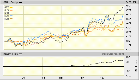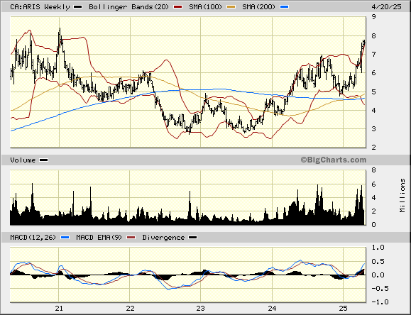 Die Globe and Mail berichtet in ihrer Ausgabe vom Donnerstag, 20. März, dass der Analyst Carey MacRury von Canaccord Genuity seine Kaufempfehlung für Aris Mining bekräftigt hat. David Leeder vom Globe schreibt in seiner Kolumne Eye On Equities, dass Herr MacRury sein Kursziel um 2 $ auf 12,50 $ erhöht hat. Analysten bewerten die Aktie im Durchschnitt mit 11,46 $. MacRury schreibt in einer Notiz: „Unsere Kaufempfehlung basiert darauf, dass Aris seine Goldproduktion bis Ende 2026 durch genehmigte und finanzierte Brownfield-Erweiterungen mehr als verdoppeln könnte, verbunden mit einer günstigen Bewertung. Darüber hinaus bietet das Projekt Soto Norte unserer Ansicht nach weiteres Wachstumspotenzial (eine PFS für Soto Norte wird für Mitte 2025 erwartet). Aris wird mit dem 0,14-fachen des Nettoinventarwerts gehandelt im Vergleich zu anderen Juniorproduzenten mit dem 0,63-fachen, und Aris bleibt eine unserer besten Ideen für 2025 unter den Juniorproduzenten.“