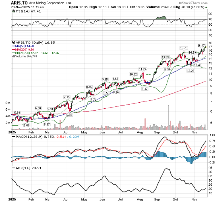 -- Aris Mining wird aufgrund der robusten Goldpreise und des aggressiven Produktionswachstums mit einem Kursziel von 19,2 US-Dollar bis zum Jahresende 2026 als „starker Kauf“ eingestuft.