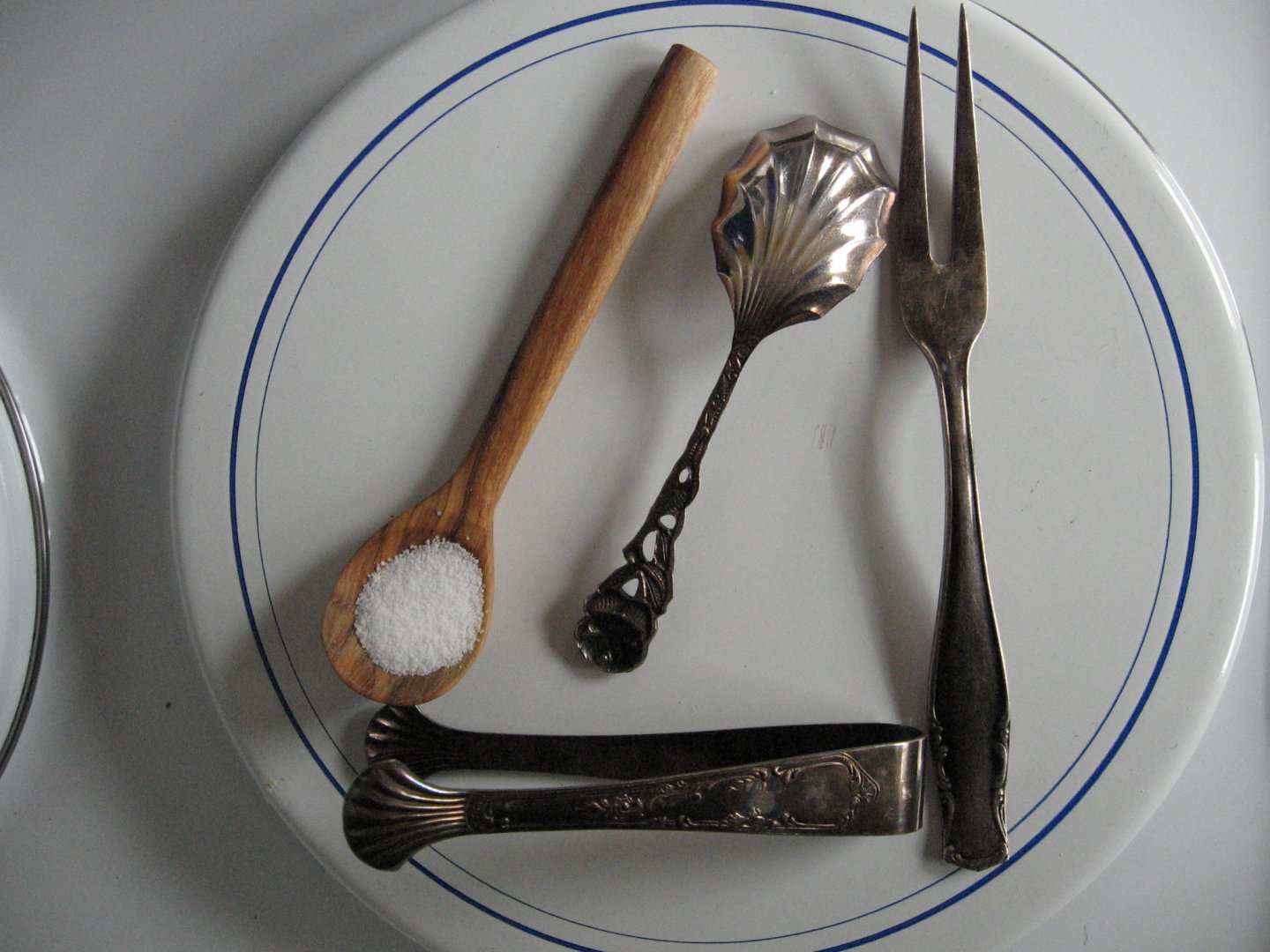 Hier ein paar Fotos von der Besteckreinigung. Besonders die Zuckerzange und der Löffel waren fast schwarz.