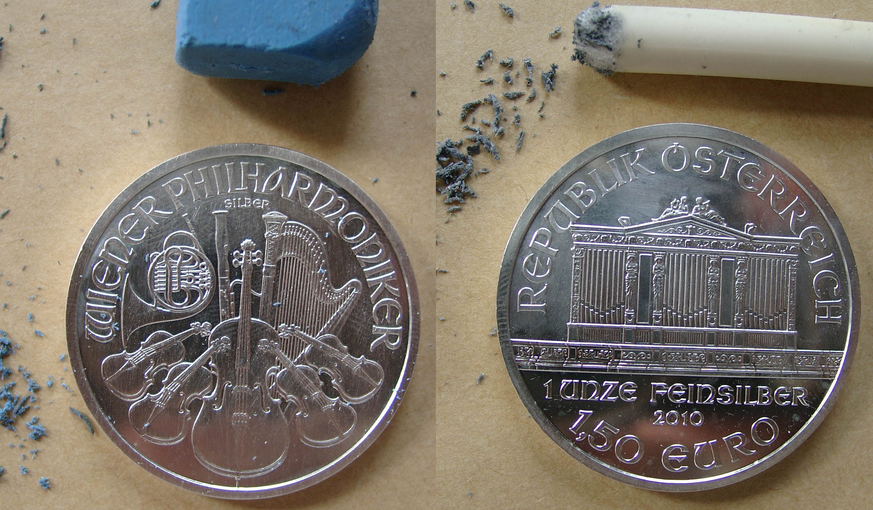 Milchflecken bei Silbermünzen stammen von Weichmachern?