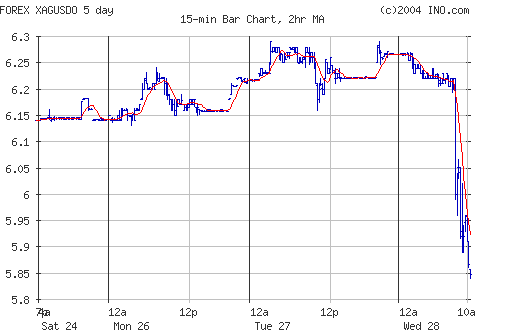 Sehe den Silberpreis über Bloomberg und verfolge den handel an den Terminbörsen Preis ist natürlich 5,86$. Zur Zeit läuft eine Telefonkonferenz von Harmony, die vielleicht etwas damit zu tun hat, kann gleich mehr schreiben.