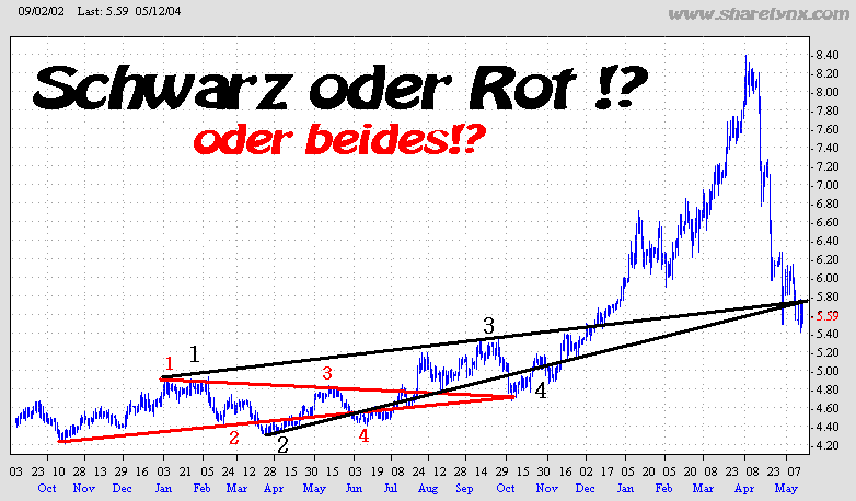 Gold Corp. Canada hatte letztes Jahr, bei den Gold Anlegern ein überwältigend positives Echo ausgelöst, als sie bekanntgab, einen Teil ihrer Gold Produktion nicht zu verkaufen, sondern zurückzuhalten und für Gold Corp. werterhöhend anzusparen. Als dann Gold Corp. Canada, im Dezember 2003, wie aus heiterem Himmel, aus mir unerklärlichen Gründen, die zwischenzeitlich angesparten ansehlichen Gold Mengen auf den Markt warf, und damit mithalf einen gerade vom Gold Kartell inszenierten Gold Preis Abverkauf, bewust, oder unbewusst, nocht zu unterstützten, hat der Gold Corp. *GG*, nicht nur gewaltig Sympatien der Gold Bugs gekostet, sondern seit damals, hat der Kurs der Gold Corp. Aktie, nicht nur wegen dem tieferen Goldpreis, und weil vielleicht mit 18.- Dollar pro Aktie damals eine relative Überbewertung vorlag, eigentlich nur noch nachgegeben. Bis runter auf einen Kurs von 10.50 Dollar pro Aktie.