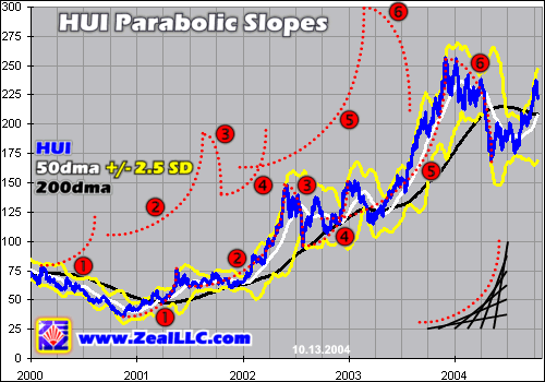 In the 1970s gold sat on its fanny for years. Then in 1976 gold started up, and during 1978 and 1979 gold exploded higher. Following the early-1980 peak of 850, gold went into a bear market that lasted to July 1999, at which time gold hit a final low of 256. Gold hit a second bottom in March of 2001 at a price of 257. From March of 2001 to March of 2004 gold rose from 257 to 436, a rise of 70%. Which is roughly where we are now.