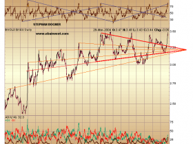 gold is gegnüber sämtlichen Schlüsselwährungen weltweit am ausbrechen! endlich! zum ersten mal so richtig! und wir haben 2004! der aufwärtstrend schon seit 4jahren? jetzt ab 2004 bei 400 gehts los, und die währungsabwertungen werden einen hübschen inflationären druck auf genau diejenigen Länder ausüben, die IMPORT-Lastig sind: USA.