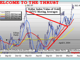 With regard to Frank Veneroso's pessimistic commodities views, I'm looking only at the DIVG and its 200-day ma and getting very good vibes. The cartel seems in a retreat that shows no sign of waning. However, it could change at any moment but that change would demand a huge, sustained multi-week drop in gold and I don't see it happening especially seeing the DIVO's 200-day ma.