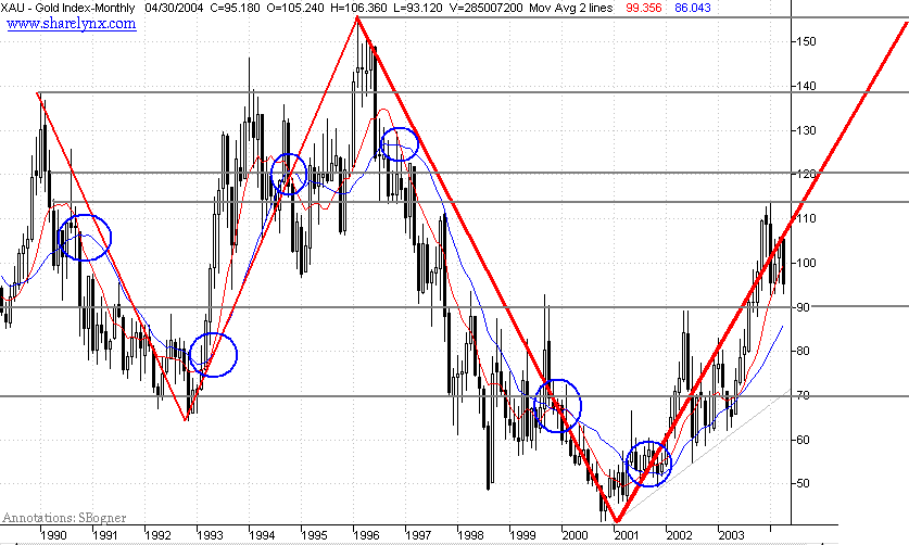 Jetzt im Abwärtstrend kaufte ich z.B. (wie im Vorposting erwähnt) weit aus dem Geld liegende Calls auf Gold, September 2004 mit Basis 480, je Oz. für 0.20 Euro, und Silber März 05, Basis 7.50 USD, für 0.60 Euro.