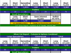 The fact that gold rallied so strongly without outside market support is marvelous news. It tells me there is a VERY strong hand buyer out there who wants gold come hell or high water. I have heard a couple of extraneous comments about gold that might fit together. The first is from one of the most highly regarded gold traders on the floor. He told my source that he smells somebody dumping a large hoard of dollars to buy gold. Perhaps it is the Arabs. My STALKER source says STALKER number 2 is active and he believes the business is coming out of Asia, perhaps even Malaysia, in preparation for the Dinar's inauguration later this year. This is all speculation, however, it makes sense.