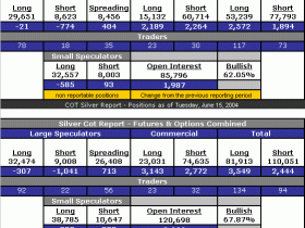 Silver had trouble holding $6, however, like gold, it was firm all day long, selling off modestly on the close. Like gold, the silver open interest is very low. Yesterday on its surge, the open interest only rose 138 contracts to 86,922.