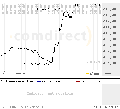 August 19 - Gold $406.60 up $2.60 – Silver $6.80 down 1 cent
