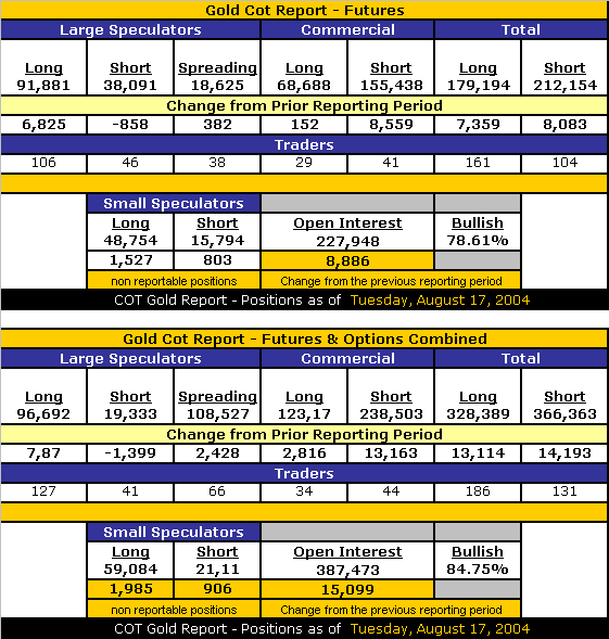 August 20 - Gold $412.90 up $6.30 – Silver $6.85 up 5 cents