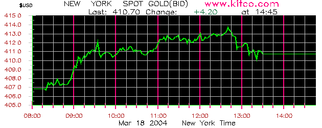 March 18 - Gold $410.70 up $4.20 - Silver $7.43 up 19 cents
