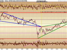 ich glaube nicht, dass Silber ständig stärker steigen wird als Gold. Ich glaube eher, dass die 2 sich immer mal wieder abwechseln, und dass sich das Ratio der beiden in diesen (roten) Grenzen aufhalten wird.