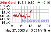 Finally, a change :)) in the gold trading pattern. With silver and the shares moving up smartly, pitiful gold was only 20 cents higher going into the last half hour of trading in the shortened Comex trading session. The funds continued to sell and sell instead of rolling over long positions. When that selling dried up, gold rose in a vacuum. Still, it only finished less than $2 higher on the day and only 70 cents higher than the AM Fix of $418.60.
