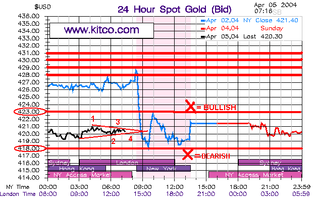 The yellow metal was quoted below USD 400 level per troy ounce and it touched a low at around USD 421.35/422.85 per troy ounce on April 2 from its earlier week rates of USD 423.25/425.55 per troy ounce.