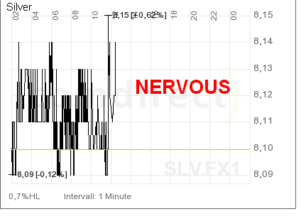 silber hat sich da schon "sauberer" bewegt - wenn auch etwas zaghaft beim thrusten hier. Alle Achtung dass über den $8,20 geschlossen und im Plus heut. Well done G&S!!!
