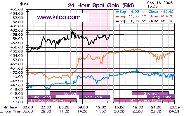 16. September 2005 Der Goldpreis ist am Freitag in New York auf den höchsten Stand seit dem Jahr 1988 geklettert und steuert auf den dritten Wochengewinn in Folge zu. Am Spotmarkt in London zog der Preis für eine Feinunze (rund 31 Gramm) Gold um 0,7 Prozent auf 459 Dollar. In New York stieg der Dezemberkontrakt auf Gold um 0,7 Prozent auf 462,30 Dollar.