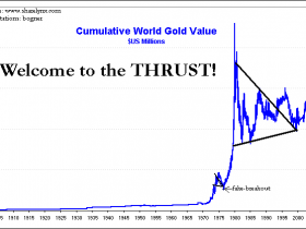 Who jogged his elbow to make this innocuous, but somewhat Teutonic remark is anyone’s guess. It is a strange coincidence that he made it, à propos de rien (sorry about the French), just when gold was powering through the US$300/oz mark. Maybe someone at the US Treasury or the ECB gave him a nudge. “ It would be a disaster, would it not, if investors saw through paper currencies for that they are – just a myriad of IOUs from ephemeral governments. Put a bit of pressure on gold, Ernst.”
