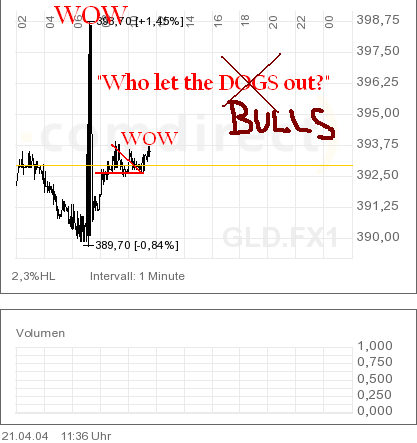 Also nach dieser Nacht ist das Mass an Korrektur langsam voll, finde ich. Vor allem auch beim Silber. Aber wer weiss, vielleicht blasen die ja heute in N.Y. zur Schlussattacke