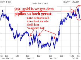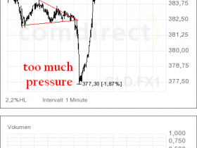 Umso interessanter wird es, wenn man sieht, daß z.B. Comdirect den Chart weiterzeichnet und man so den Peek nach unten erkennen kann. Mittlerweile ist Gold jedoch bei Comdirect wieder auf ca. 386,- gestiegen.