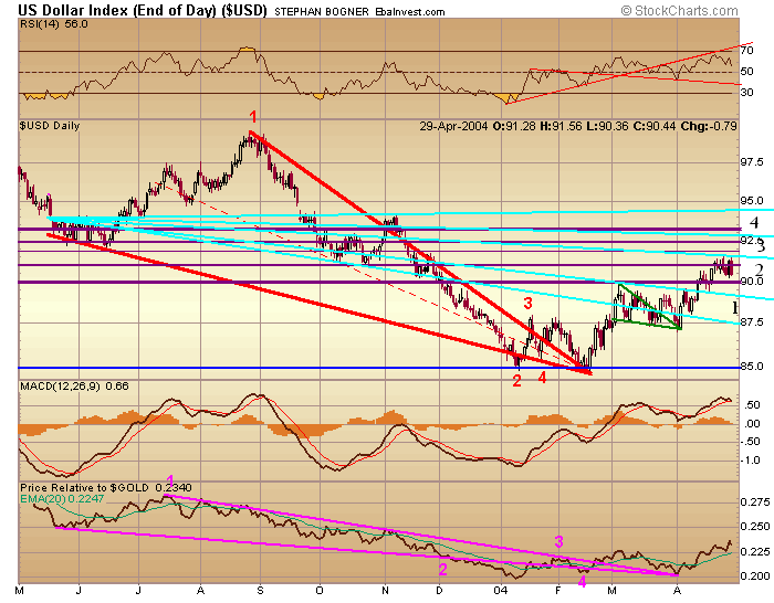 With gold gyrating today, having touched $377 for a time, we much keep in mind that the dollar was tracking at 87 in past weeks and now is up over 91. Thus, gold ought to be down in absolute terms. This is the hard thing to appreciate when considering the DIVG.