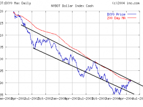 Al Green today said that banks are prepared for higher interest rates. He also said that deflation in no longer an issue. The Fed has become very sensitive to what they say in public due to potential market reaction. Over the years the Greenspan Fed has used the power of jawboning more than any other Fed in history. So much so, in fact, that one can easily come to the conclusion that if they say one thing, they mean the complete opposite. If they say the economy is doing "well" it's to quell any fears that it is not. When they say they are not worried about inflation it means they really are but don't want the market to worry. In fact, to listen to the Fed Chairman and Governors, almost all potential problems in the economy do not exist. If the dollar is strong it's good, if the dollar is weak it's good. Now we hear that deflation is no longer a worry at the very same time that some of the smartest and most experienced economist and investors are throwing up the Deflationary red flags. It seems AGs comments on Deflation and higher rates today was a way to keep the highly leveraged markets he created in line.