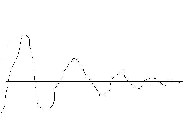 Es folgt das typische Einschwingverhalten: (freihandgezittert, habe gerade keine Grafik einer gedämpften Schwingung gefunden)