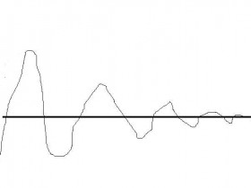 Es folgt das typische Einschwingverhalten: (freihandgezittert, habe gerade keine Grafik einer gedämpften Schwingung gefunden)