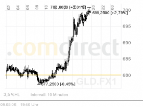 Und hier - mindestens genauso schön - der Gold-Chart der letzten 12 Monate - mit Punktlandung bei 700,00 $ (Zum vergrößern anklicken):
