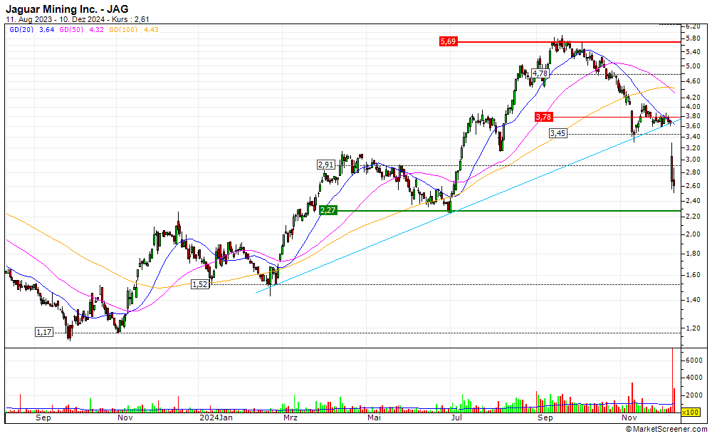 Eine der neueren Erwerbungen mit extremer Vola, nicht nur heute mit knapp 20 %.... Vor einigen Tagen Absturz, dann mit enormer Erholung, ohne erkennbaren Huintergrund. JAG momentan +10 % in einem ansonsten schwachem Umfeld.... Homesite : http://www.jaguarmining.com/s/home.asp Grüsse