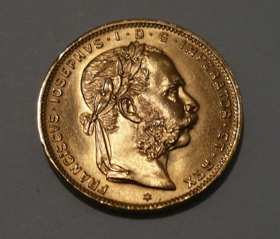 ist eine 8 florin goldmünze aus österreich feinheit hier 900/1000.