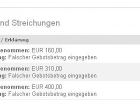Die cleveren Verkäufer lassen irgendeinen Kumpel ein überzogenes Gebot abgeben und gleich zurückziehen, der nächste Kumpel kann dann kurz vor Auktionsende das zweite Gebot direkt unter meinem plazieren.