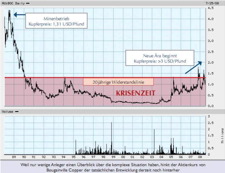 Im Moment ist Bougainville Copper bei Reserven von über 40 Milliarden USD (alleine die Pangunamine,BOC hält noch weitere 7 Lizenzen)) lediglich mit 0,6% davon bewertet.