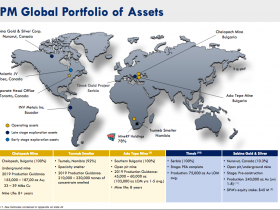 ZitatDundee Precious Metals Inc. is a well-financed, Canadian based, international gold mining company engaged in the acquisition, exploration, development, mining and processing of precious metals. The Company's principal operating assets include the Chelopech operation, which produces a gold, copper and silver concentrate, located east of Sofia, Bulgaria; the Kapan operation, which produces gold, copper, zinc and silver concentrate, located in southern Armenia; and the Tsumeb smelter, a concentrate processing facility located in Namibia. DPM also holds interests in a number of developing gold properties located in Bulgaria, Serbia, and northern Canada, including interests held through its 51.4% owned subsidiary, Avala Resources Ltd., its 47.3% interest in Dunav Resources Ltd. and its 11.5% interest in Sabina Gold & Silver Corp.