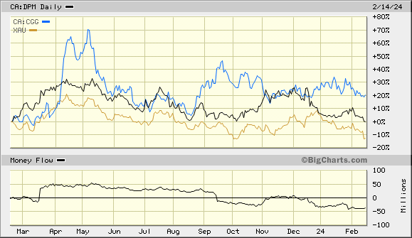 Dundee hat für 2023 grandiose Zahlen vorgelegt. Der Gewinn konnte um über 50% gesteigert werden. Die Gewinnmarge von über 30% spricht Bände. Zudem hat DPM in 2023 einen massiven Free Cash Flow generieren können, der es dem Unternehmen u.a. ermöglicht hat Aktien für rund 66 Mio.$ zurückzukaufen und Dividenden i.H.v. 30 Mio. $ zu zahlen. Parallel dazu konnte der Cashbestand um 166 Mio. $ erhöht werden. Für 2024 erwartet Dundee einen durchschnittlichen Produktionsrückgang von ca. 10% bei minimal steigenden Kosten.
